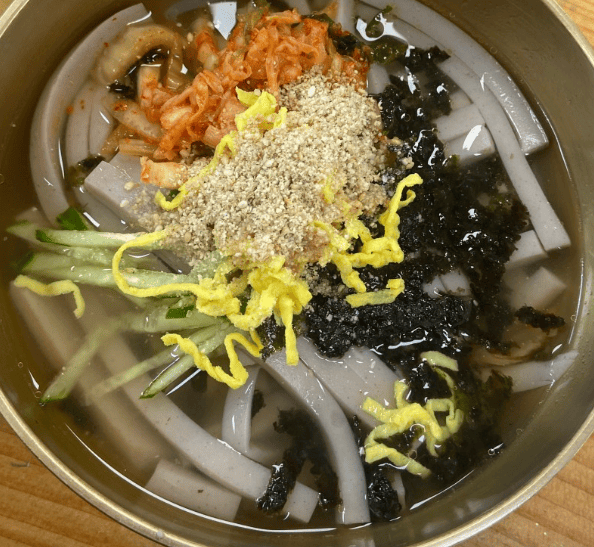 야들야들한 묵과 시원한 국물이 어우러진 건강한 음식으로, 고슬고슬한 밥과 함께 즐기기에 안성맞춤입니다.