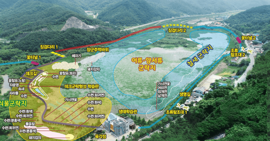정양늪 생태공원은 전체적으로 자연 친화적으로 조성되어 있고, 데크길과 산책로가 잘 정비되어 있어 유모차나 휠체어도 편하게 다닐 수 있겠더라고요.