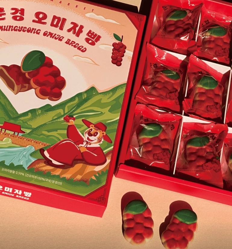 - 오미자빵은 개별 포장되어 선물용으로 인기