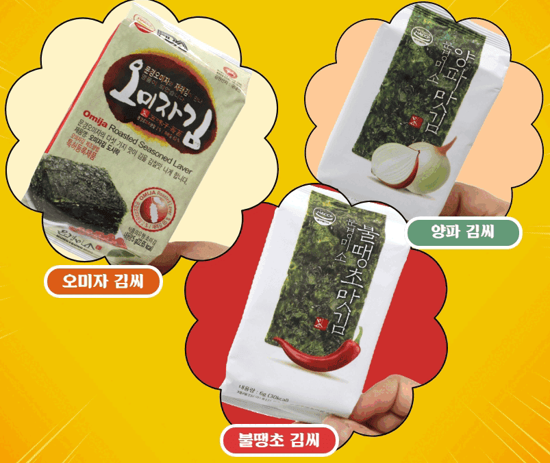 오미자김, 양파맛김...