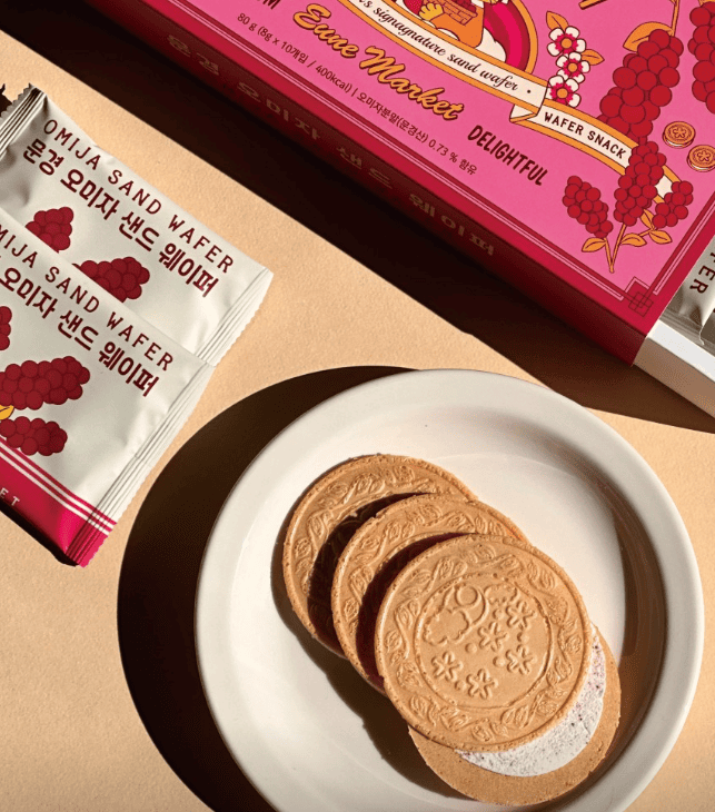오미자전병(바삭한 전병에 오미자 분말이 더해진 고급스러운 풍미)