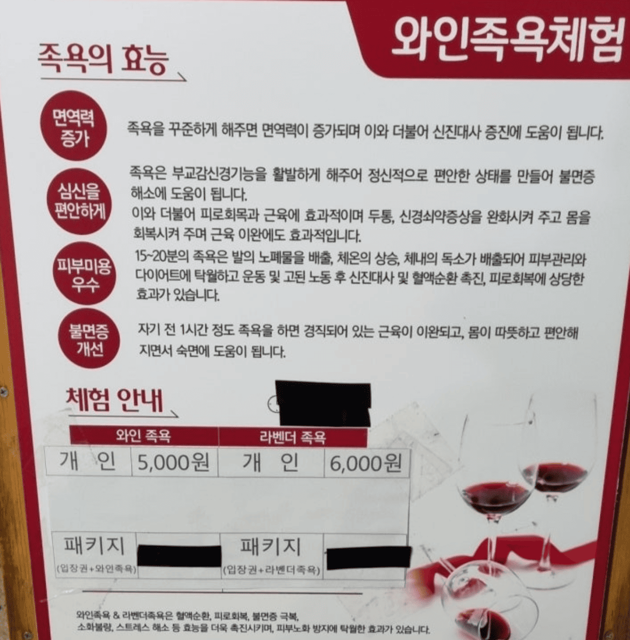 2. 족욕 체험을 원한다면 패키지권을 구매하세요(수건 제공, 온수·냉수 선택 가능).