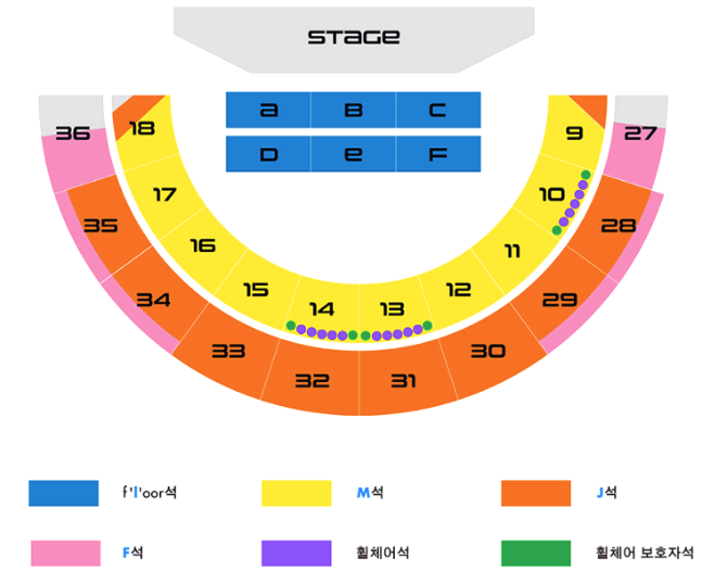 1층은 무대와 가까워 콘서트를 즐기기에 최적입니다. 하지만 단차가 없기에 앞 쪽에 앉은 사람에 따라 시야가 제한 될 수 있습니다.