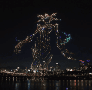 한강공원에서 열리는 드론라이트 쇼. 밤하늘을 수놓는 1,000대의 드론이 마치 은하수와 같은 장관을 연출하는데, 그 아름다움에 순간 매료된다고 합니다.