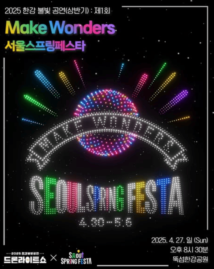 따스한 봄밤, 서울 한강의 밤하늘을 화려하게 수놓을 2025 한강 드론 라이트쇼가 다시 찾아왔습니다.