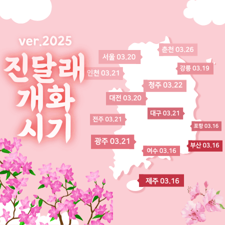 진달래는 봄의 아름다움을 더하는 꽃 중 하나인데요. 2025년 진달래 개화시기는 다음과 같습니다: