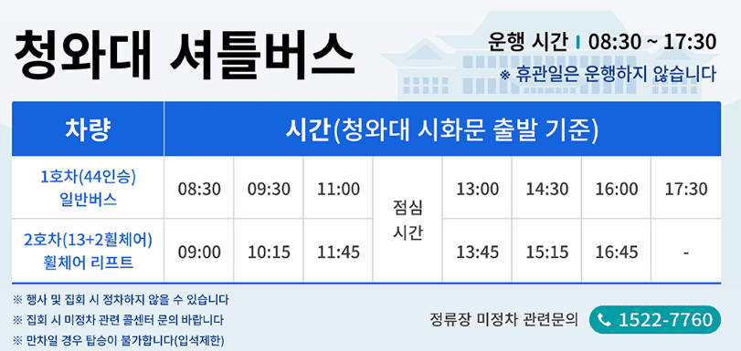 : 청와대 개방일에만 운행, 시화문 출발 기준 하루 7회 순환