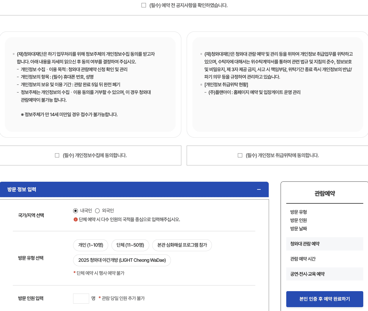 ▶ 방문 날짜·시간·인원 입력