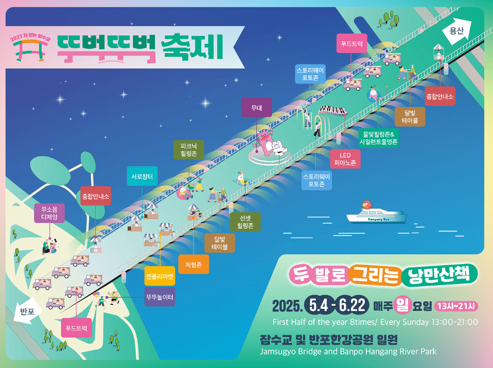 따뜻한 봄바람이 불어오는 5월, 서울의 대표 걷기 축제인 ‘2025 차 없는 잠수교 뚜벅뚜벅 축제’가 다시 한 번 한강을 물들입니다.
