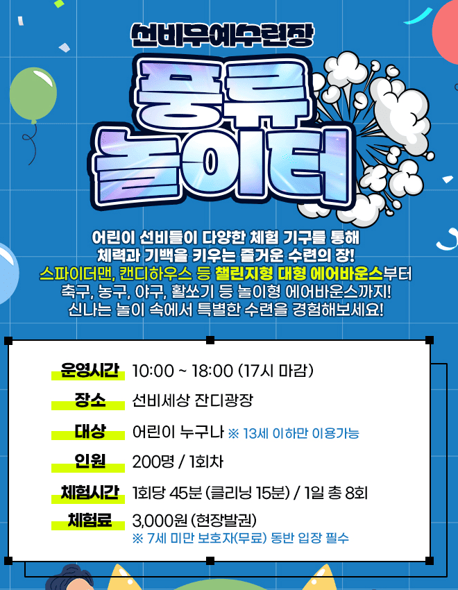 3.부대행사: 페이스페인팅, 선비세상 풍선, 캐릭터 솜사탕 등 아이들이 좋아할 만한 부대행사도 풍성하게 마련되어 있어요