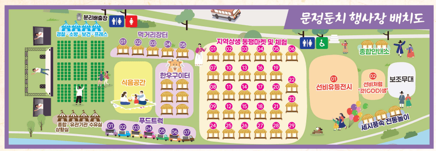 문정둔치 및 선비촌 일원 주차장과 대형버스 주차장은 아래 이미지를 참고해주세요.