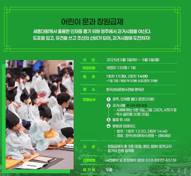 오늘은 2025년 5월 3일부터 5일까지 경북 영주에서 열리는 영주 한국선비문화축제와 어린이 선비축제에 대해 자세히 알려드릴게요.